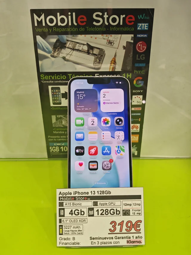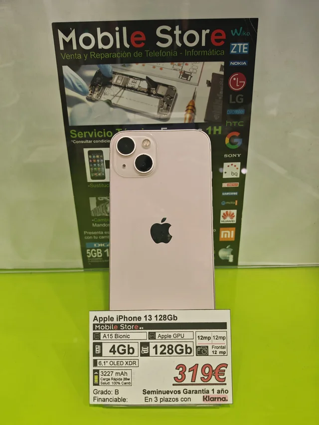 Apple iPhone 13 de 128GB en color rosa, en buen estado y con garantía. -Chip A15 Bionic -Pantalla OLED XDR de 6.1″ -Batería 3227 mAh carga rápida 20W. -Cámara principal de 12MP y frontal de 12MP. Todos nuestros artículos de segunda mano han sido testeados debidamente para comprobar su correcto funcionamiento. Damos 1 año de garantía en artículos usados y 3 años en artículos nuevos. Quieres verlos? Pásate por alguna de nuestras tiendas en Málaga: Av. de la Aurora, 19 Calle Armengual de la Mota, 10 Teléfono (Whatsapp): 627 119 234 Compramos también teléfonos, incluso con avería. Nuestras valoraciones nos avalan.