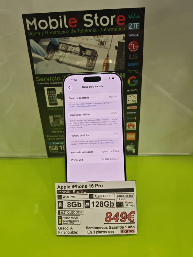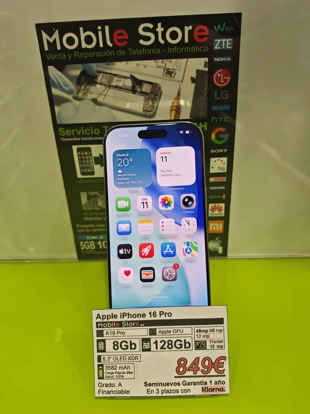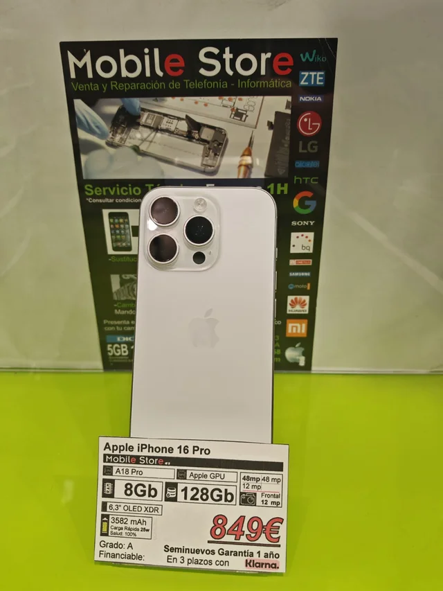 Apple iPhone 16 Pro en color blanco, con almacenamiento de 128GB. Este modelo cuenta con una pantalla OLED XDR de 6.3″ y una batería de 3582 mAh con carga rápida de 25W (salud 100%). Está en perfecto estado. -Chip A18 Pro -Cámara triple trasera 48MP y frontal: 12MP Todos nuestros artículos de segunda mano han sido testeados debidamente para comprobar su correcto funcionamiento. Damos 1 año de garantía en artículos usados y 3 años en artículos nuevos. Quieres verlos? Pásate por alguna de nuestras tiendas en Málaga: Av. de la Aurora, 19 C. Armengual de la Mota, 10 Teléfono (Whatsapp): 627119234 Compramos también teléfonos averiados