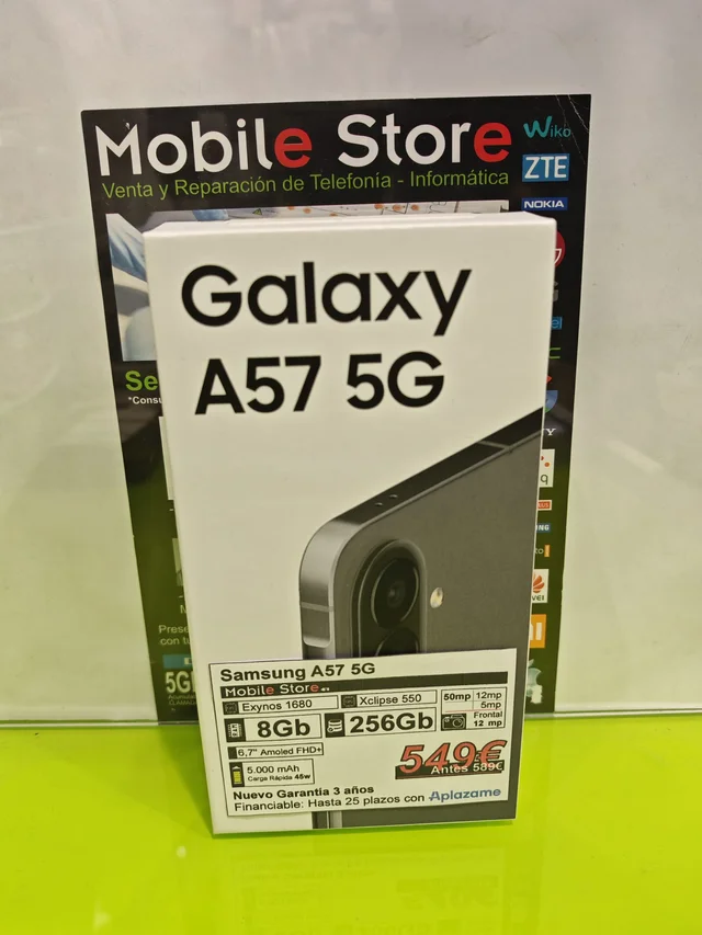 Samsung Galaxy A57 5G con 256GB de almacenamiento. -Pantalla Amoled FHD+ de 6,7″ -Batería 5.000 mAh con carga rápida de 45W -Procesador Exynos 1680 -Cámara principal de 50MP y frontal de 12MP -Garantía de 3 años Todos nuestros artículos de segunda mano han sido testeados debidamente para comprobar su correcto funcionamiento. Damos 1 año de garantía en artículos usados y 3 años en artículos nuevos. Quieres verlos? Pásate por alguna de nuestras tiendas en Málaga: Av. de la Aurora, 19 Calle Armengual de la Mota, 10 Teléfono (Whatsapp): 627 119 234 Compramos también teléfonos, incluso con avería. Nuestras valoraciones nos avalan.