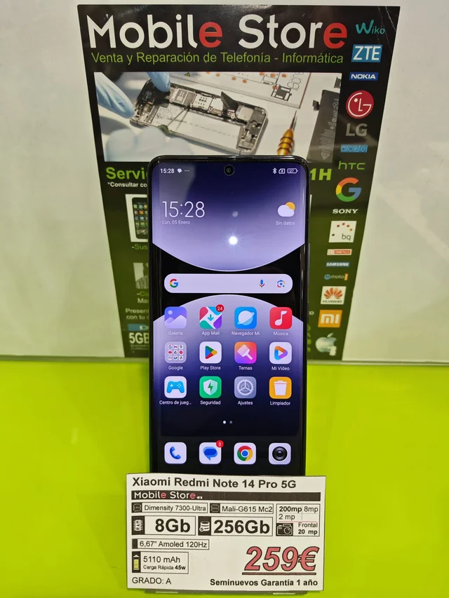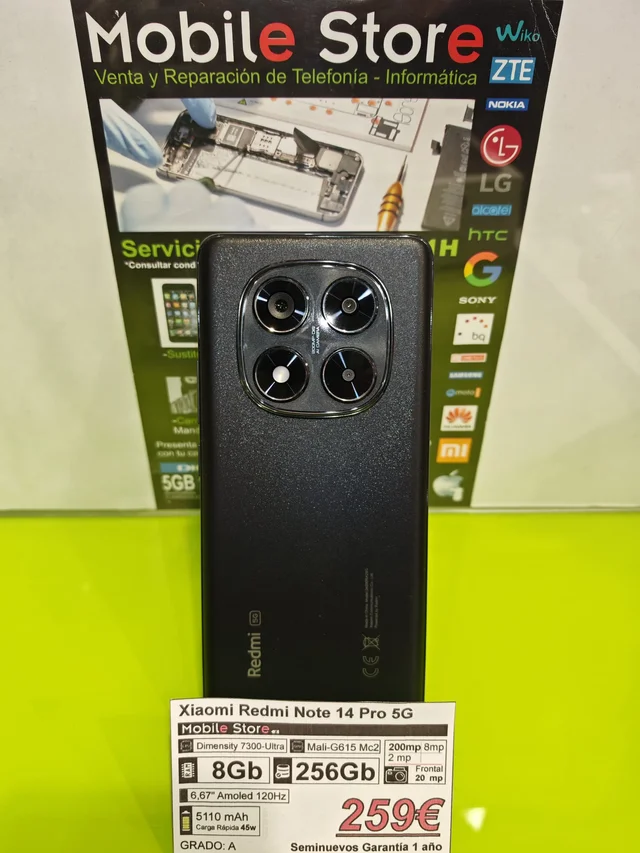 Xiaomi Redmi Note 14 Pro 5G en color negro y con 256GB de almacenamiento en perfecto estado. Todos nuestros artículos de segunda mano han sido testeados debidamente para comprobar su correcto funcionamiento. Damos 1 año de garantía en artículos usados y 3 años en artículos nuevos. Quieres verlos? Pásate por alguna de nuestras tiendas en Málaga: Av. de la Aurora, 19 Calle Armengual de la Mota, 10 Teléfono (Whatsapp): 627 119 234 Compramos también teléfonos, incluso con avería. Nuestras valoraciones nos avalan.