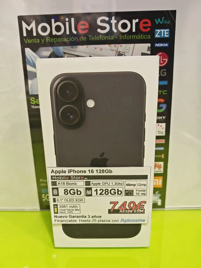 Apple iPhone 16 con 128GB de almacenamiento en color negro. Modelo nuevo a estrenar. -Pantalla OLED XDR de 6,1″ -Chip A18 Bionic -GPU de 1.3Ghz. -Cámara dual principal de 48+12MP y frontal de 12MP. -Batería de 3561 mAh con carga rápida. -Garantía de 3 años. Todos nuestros artículos de segunda mano han sido testeados debidamente para comprobar su correcto funcionamiento. Damos 1 año de garantía en artículos usados y 3 años en artículos nuevos. Quieres verlos? Pásate por alguna de nuestras tiendas en Málaga: Av. de la Aurora, 19 Calle Armengual de la Mota, 10 Teléfono (Whatsapp): 627 119 234 Compramos también teléfonos.